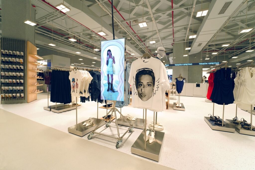 Sobre las dimensiones, Bershka (Bsk) tiene un espacio comercial de 849 m2, por su parte Pull & Bear (P&B) cuenta 986 m2. Dentro de ellas destacan su estética moderna que apuesta por la tecnología. De estilo industrial y minimalista, a los largo de los establecimientos, se apuesta por la comunicación digital a través de pantallas integradas en múltiples posiciones.