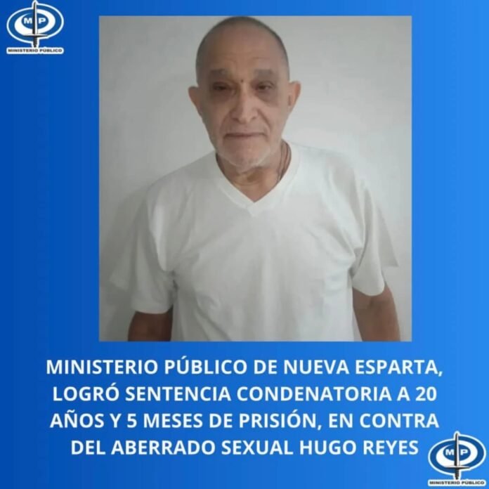 La condena se dictó en el estado Nueva Esparta, tras comprobarse que Reyes perpetró de manera reiterada los aberrantes actos contra una menor de 13 años, durante los últimos tres años.