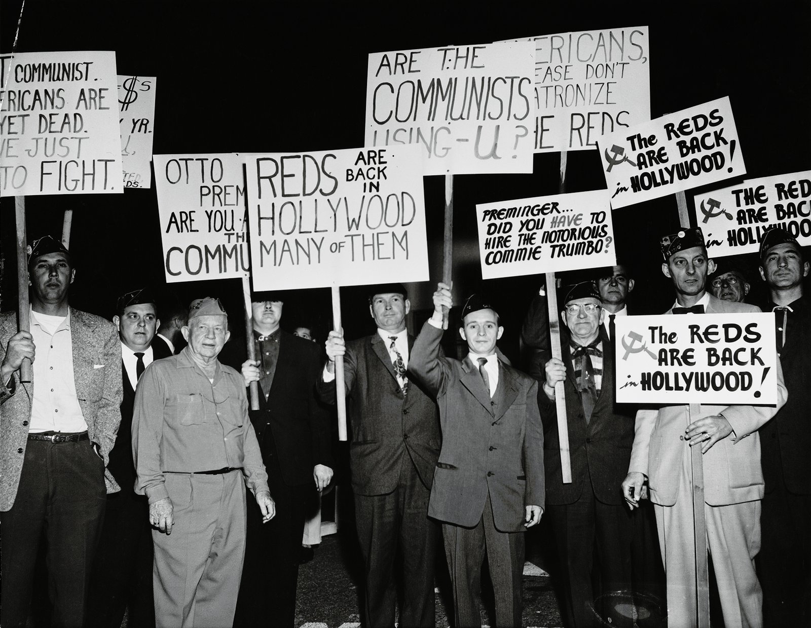 La exposición cuenta que en 1947 un grupo de 45 figuras de Hollywood recibieron una citación para testificar, entre ellos actores y ejecutivos de la industria, ante el temido Comité de Actividades Antiamericanas de la Cámara de Representantes (HUAC), que entre sus miembros tenía al entonces congresista por California Richard Nixon. Sobre los citados pesaban acusaciones de contenido comunista en algunas películas, y era el FBI el que proporcionaba el material sospechoso a la HUAC.