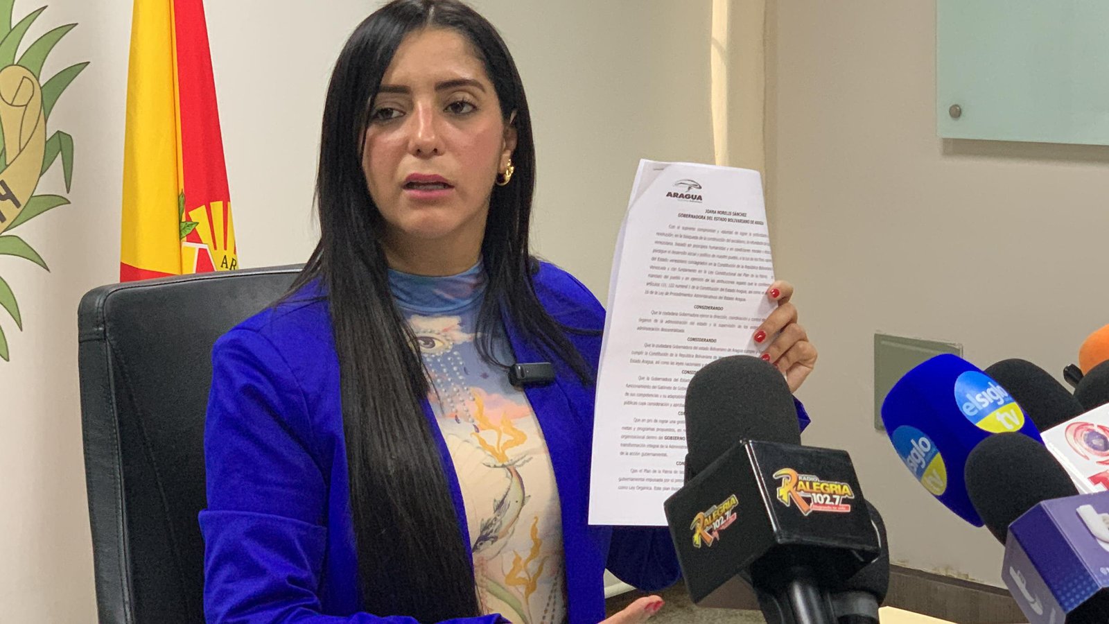 La gobernadora del estado Aragua, Joana Sánchez, presentó este lunes el decreto 4820 para «Implementar la transformación integral del Gobierno Bolivariano de Aragua», sustentado en las siete transformaciones establecidas en la Ley del Plan de la Patria y que se verá reflejado en la región a través del Plan de la Aragüeñidad.